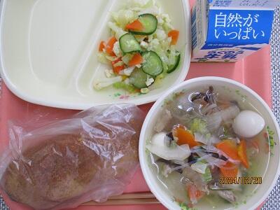 今日は、揚げパンとの相性を考えて、具だくさんの春雨スープ、カリフラワーのサラダは、少しあっさりとした味つけにしました。カリフラワーのサラダには、小さなコロコロチーズも入れたので、食べやすかったようです。