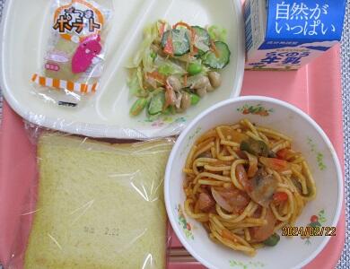 米粉入りかぼちゃパン 牛乳 スパゲティナポリタン ビーンズサラダ