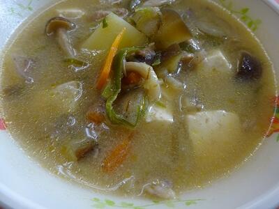 さて、今朝のおみそ汁は、「新玉ねぎ、人参、えのきたけ、ごぼう、小ねぎ、しょうが、油あげ」でした。ごぼうは、混ぜご飯を作った時の残りなので、少しの量です。ささがきにして入れて、食べやすくしました。