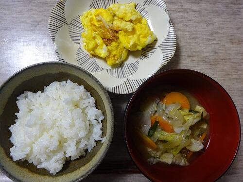 さて、今朝のおみそ汁は、「新玉ねぎ、人参、しめじ、キャベツ、油あげ」でした。定番の玉ねぎは、切り方を変えながら、少しでも変化をつけているところです。肌寒い朝、おみそ汁で、体の中がじんわり温かくなりました。
