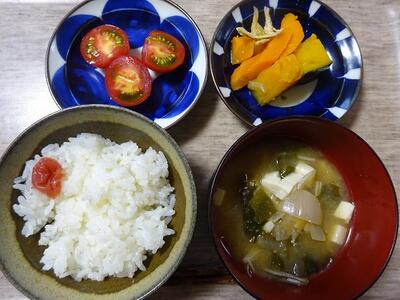 さて、朝ごはんの写真を2枚のせています。水曜日は、「えのきたけ、かぼちゃ、人参、玉ねぎ、油揚げ」でした。木曜日は、「人参、玉ねぎ、しめじ、じゃがいも、油揚げ」でした。どちらも、私の好みで甘口の合わせ味噌で味つけしました。