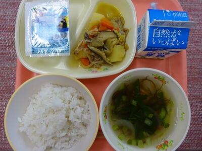 麦ごはん 牛乳 呉汁 鶏肉じゃが ミニトマト