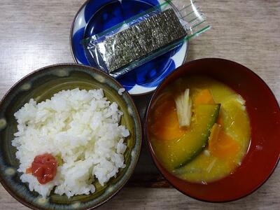 さて、朝ごはんの写真を2枚のせています。水曜日は、「えのきたけ、かぼちゃ、人参、玉ねぎ、油揚げ」でした。木曜日は、「人参、玉ねぎ、しめじ、じゃがいも、油揚げ」でした。どちらも、私の好みで甘口の合わせ味噌で味つけしました。