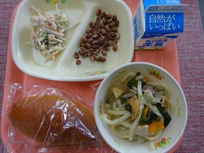 ミルクパン 牛乳 五目うどん ごぼうサラダ ココア豆