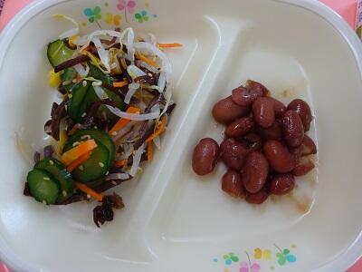 6月にも金時豆の甘煮を出しましたが、その時より、残暑が厳しい時期なので、塩を少し入れて、仕上げました。(熱中症対策になるといいなぁ~という思いを込めています。)