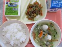麦ごはん 牛乳 のっぺい汁 いわしのおかか煮 たくあんサラダ