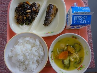 ごはん 牛乳 夏野菜のみそ汁 いわしの梅煮 ひじきのうま煮