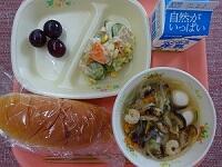 ミルクパン 牛乳 タイピーエン れんこんサラダ ぶどう