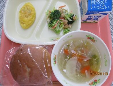 コッペパン 牛乳 切り干し大根のスープ コロッケ 野菜ソテー