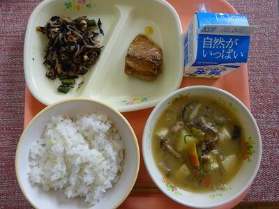 麦ごはん 牛乳 豚汁 さばのしょうが煮 ひじきのうま煮