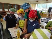 5年生「家庭科」での調理実習の様子です。「野菜をゆでる」実習です。野菜を切る、ゆでる、盛り付ける、フレンチドレッシングを作る過程を、班の中で分担しながら、実習をしました。野菜の種類、切り方、ゆで時間などで、仕上がりが変わることも感じていたようです。ドレッシング作りは、算数の学習を思い出しながら計量していました。どの班も、「おいしい!」と箸が止まらない様子でした。また、おうちでも作ってみるといいですね。