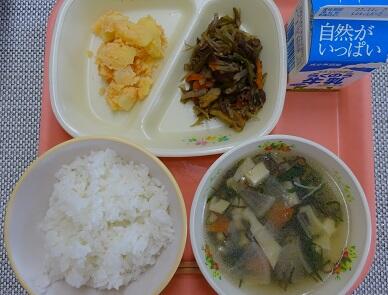 新米ごはん 牛乳 もずくスープ 五目きんぴら めんたいポテト