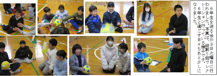 ※2月27日昼休みに6年生がドッチボールをして遊んでくれました。もうすぐ卒業・・・