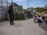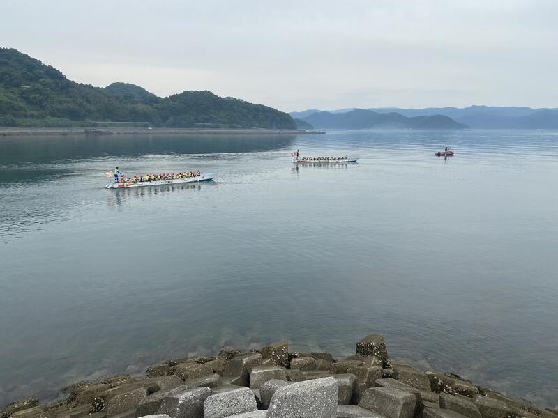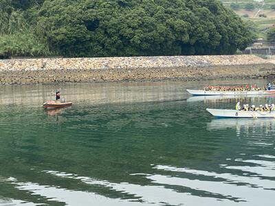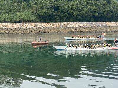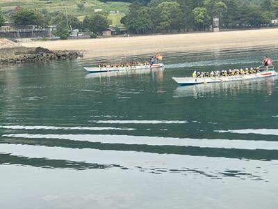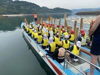 5年生の集団宿泊も最後のプログラムとなりました。最後のプログラムは、芦北ならではのペーロン船です。