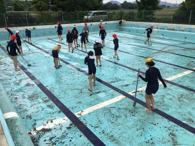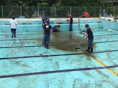 さて、今年のプール掃除はなんと消防団の方にご協力いただきました!