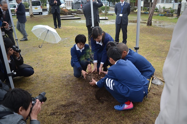 東日本大震災後に東松山市の野蒜海岸で拾った松ぼっくりから育てた松の二世として、松の苗をいただきました。
