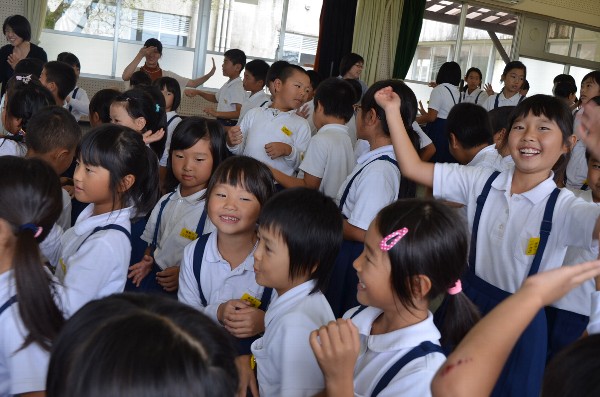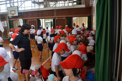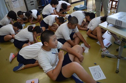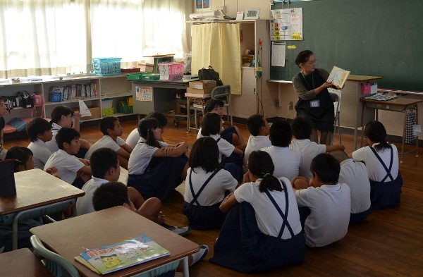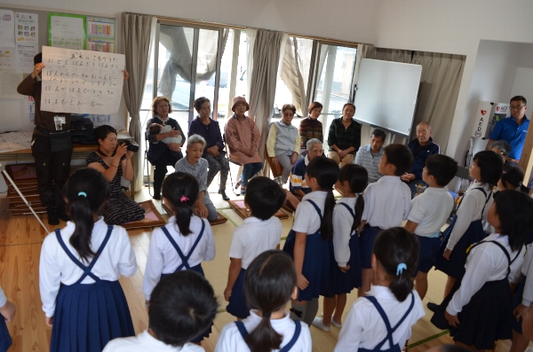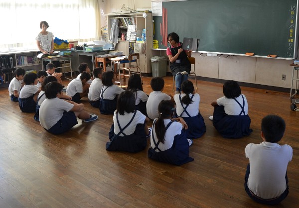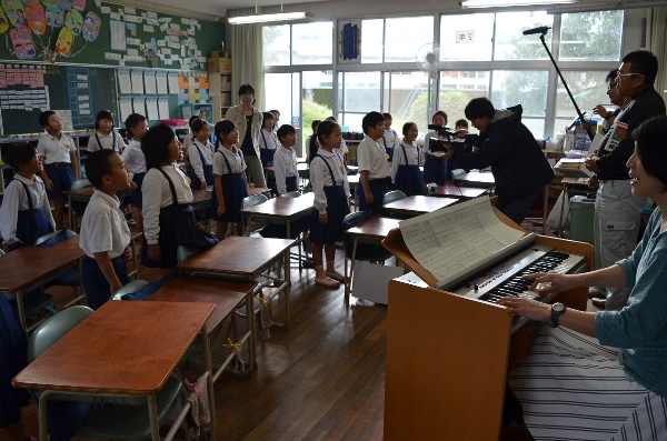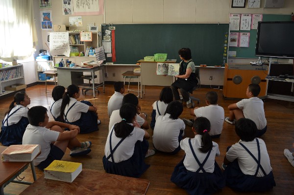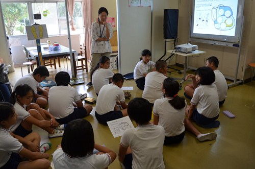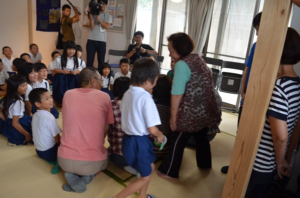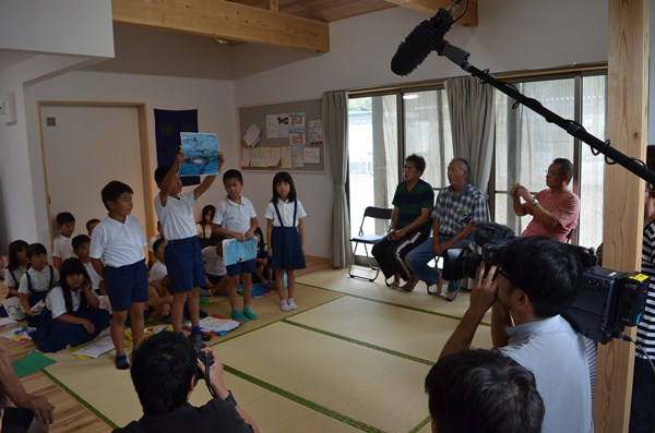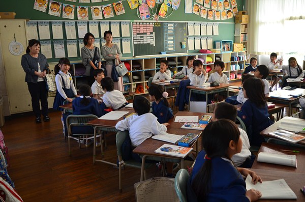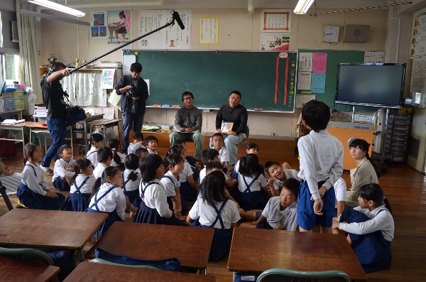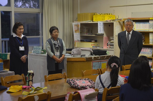 今日はその主婦のグループの方々が、テレビカメラとともに、飯野小3年生教室へ。