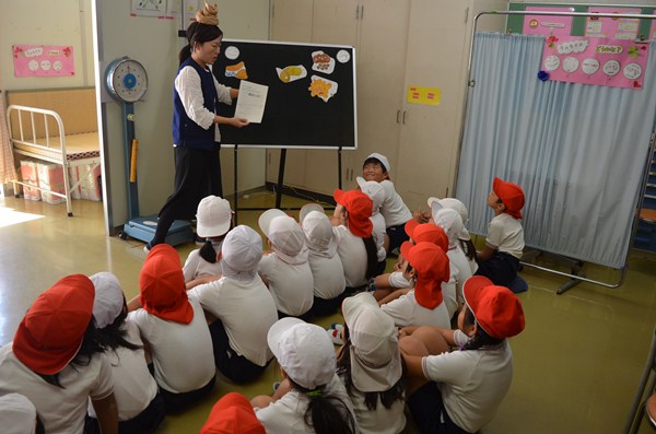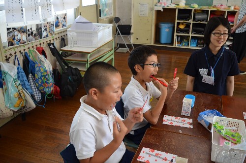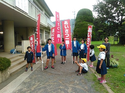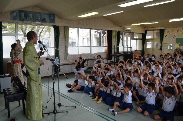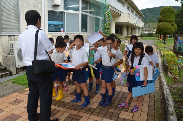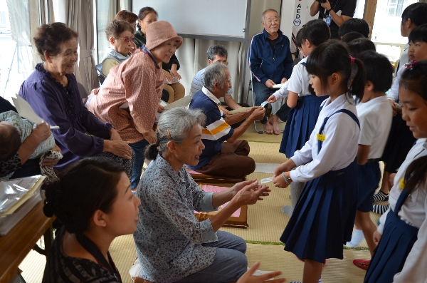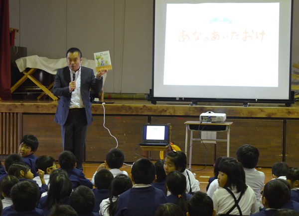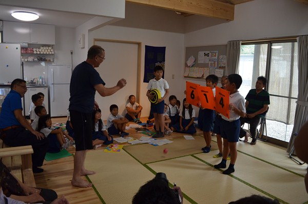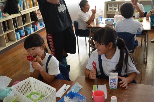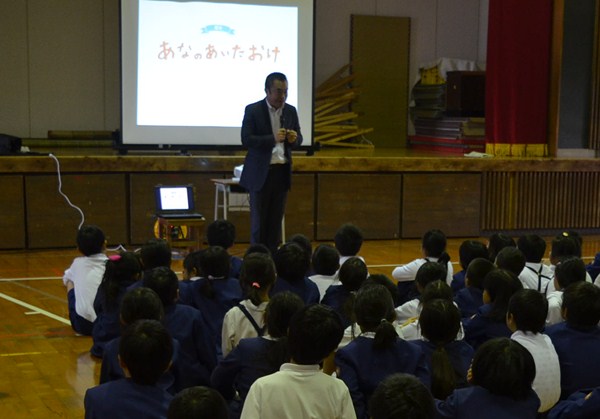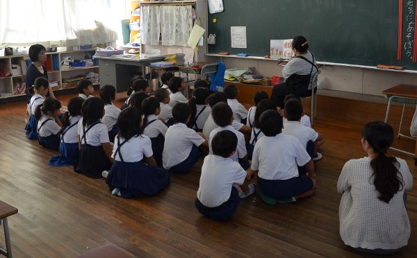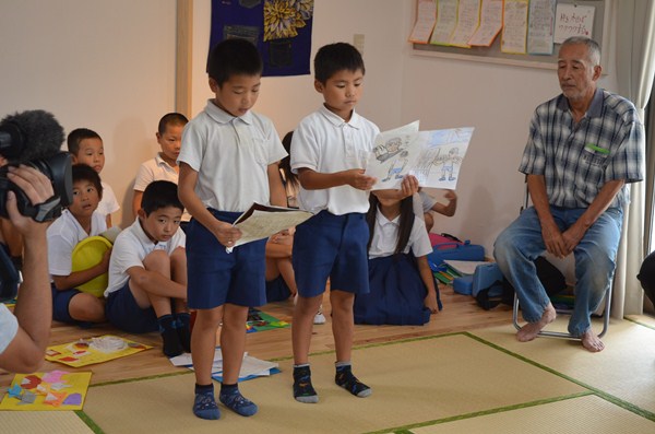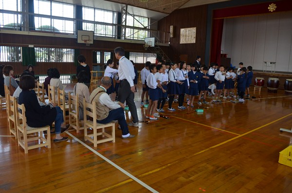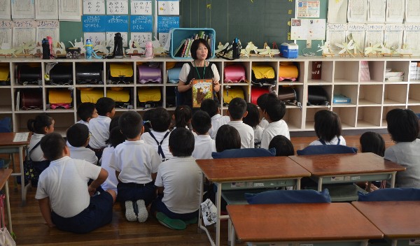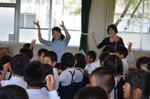 今日はその主婦のグループの方々が、テレビカメラとともに、飯野小3年生教室へ。