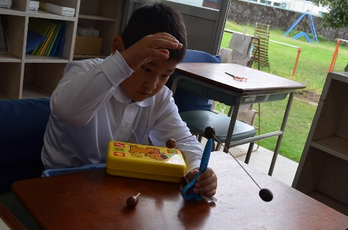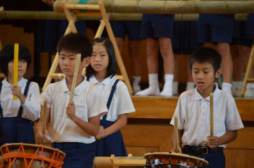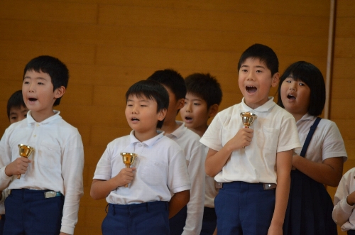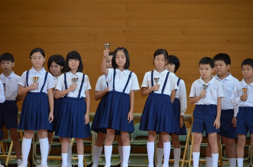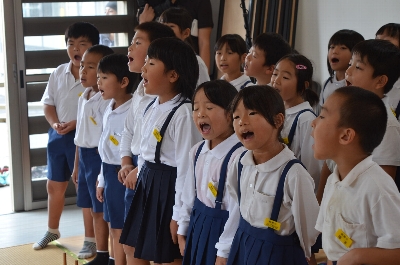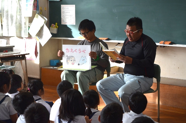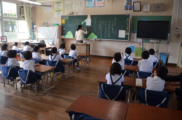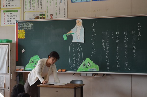 1年生教室では、「熊本の心」から「やまのせいくらべ」ですね。郷土に伝わる、皆さんよくご存じの民話です。