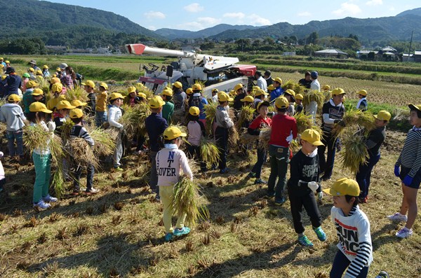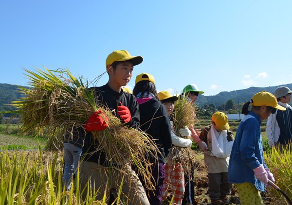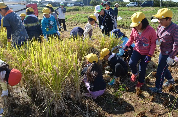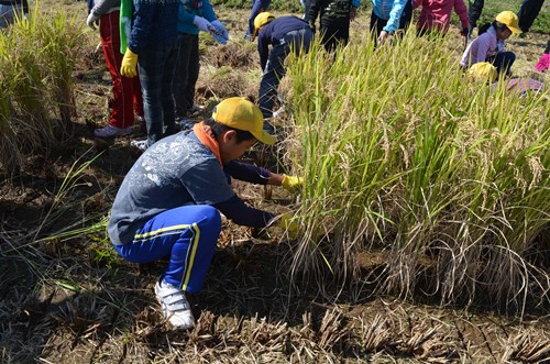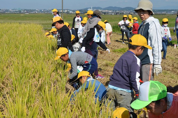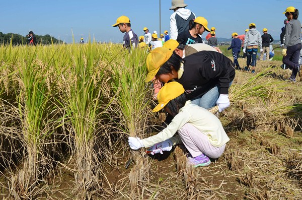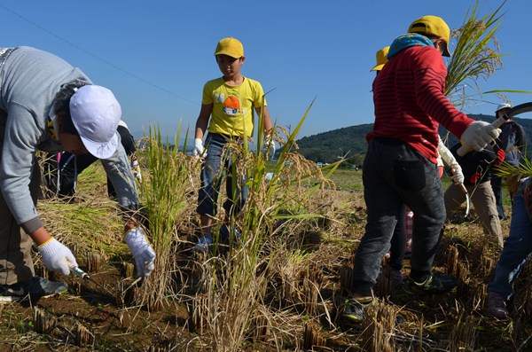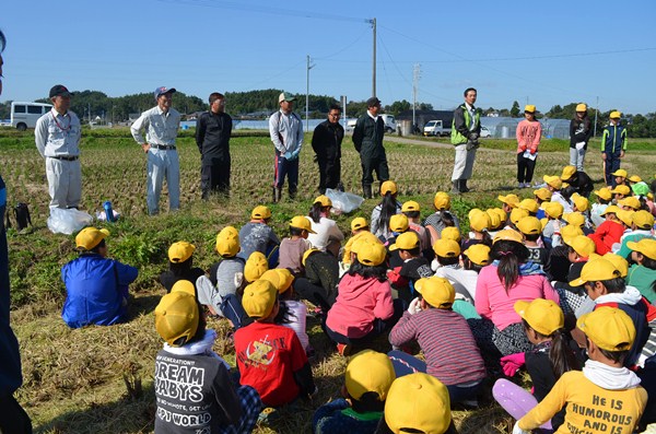 次にJAのかたから説明です。鎌の取り扱い、稲穂のそろえ方、丁寧にわかりやすく教えていただきました。