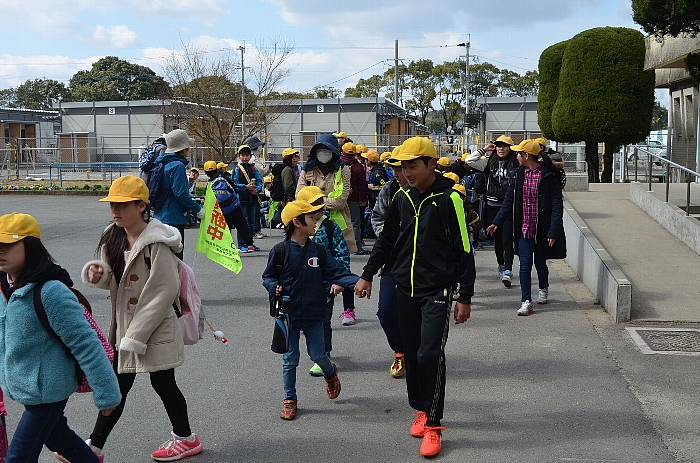 3月8日(水)送別遠足 投稿日時 : 2017/03/08 学校サイト管理者 噂によると、3年ぶりということです。雨やPM2.5でここ2年間中止だったそうです。久しぶりの送別遠足。初めに、体育館で児童会運営委員会により、楽しいゲームです。恒例?の「6年生クイズ」 スリーヒントで、6年生を当てます。簡単なのもあれば、超難問もあります。じゃんけん列車です。縦割り班での手つなぎフラフープ抜けです。ボール渡しゲームです。いよいよ出発です。もう少しです。やっと着きました。まずはお弁当です。おうちの方、ありがとうございます。帰りは、ちょっとへばりました。でもみんながんばりました。