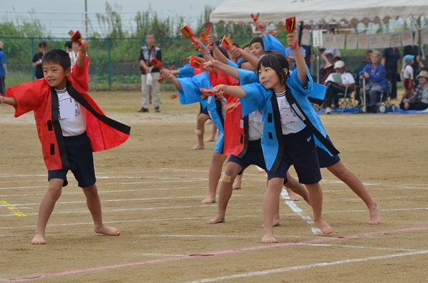 9月24日(日)運動会 その3 投稿日時 : 2017/09/24 学校サイト管理者 来年の新入生による徒競走です。元気いっぱい!!3・4年生による、ソーラン節。リズムがあってかっこいい踊りです。1・2年生の玉入れです。同点だったり、大差がついたり・・・・・こちらは大人と子どもの部。人数はどれどれ・・・・・・同じじゃないよーこちらは来賓競技。昨年夏休みの終わりに「青木功」さんからいただいた「スナッグゴルフ。いやあ、ちょっと難しい・・・本格的に打つ人もいて、盛り上がり!!こちらは消防団の競技。昨年は、各ご家庭も大変な中に消防団は大活躍。地域のヒーローです。服もリレーするのですね。早着替え。全校児童による、綱引きです。練習では赤の全勝。判官贔屓で白を応援したくなります。なんと、1対1の引き分け。3回戦に突入です。団長によるじゃんけんで、場所を決めます。PTA競技「大玉転がし」です。こちらは昨年度本校に勤務されていた先生方です。佐賀県からも・・・・遠路ありがとうございました。続く・・・・