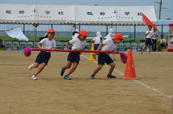 9月24日(日) 運動会 投稿日時 : 2017/09/24 学校サイト管理者 平成29年度飯野小運動会テーマ最後まであきらめず笑顔あふれる運動会~元気 協力 感動~「かかし」登場!!いよいよ開会式です。入場行進は8時30分から。入場行進が終わり、全員が勢揃い。1年生代表4人による開会のことば。元気よく、大きな声で話せました。優勝旗返還です。平成28年度は紅組の優勝さてさて今年は・・・・・?紅白団長による、選手宣誓です。明るく通る張りのある声。素晴らしい選手宣誓でした。続く・・・・