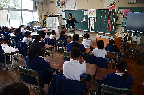 今日はその主婦のグループの方々が、テレビカメラとともに、飯野小3年生教室へ。