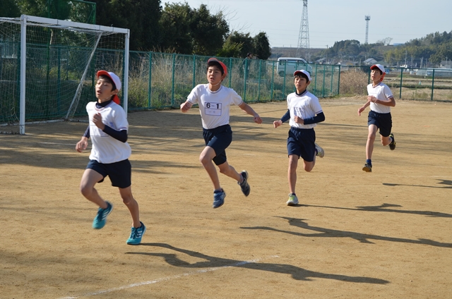 12月14日(木)持久走大会 投稿日時 : 2017/12/14 学校サイト管理者 朝はマイナス2度。この冬一番の寒さでしたが、太陽が出てきて、持久走大会の時には、日向は結構ぽかぽか。しかし、陰は真冬。太陽のありがたさが分かる日でした。そんな天気の中、ここ2週間ほど練習を頑張ってきた持久走大会の日です。子どもたちが走りやすいように、転んでケガをしないように、道を掃き清める数名の職員。子どもたちが運動場に集まり、開会式です。次は準備体操です。まずスタートは、中学年からです。みんなの応援、保護者の皆様の応援を受けて、本当に最後まで頑張りました。次は低学年のスタートです。次はいよいよ高学年です。たくさんの保護者の皆様の応援。ありがとうございました。心底頑張って走りました。みんなへとへとです。最後に閉会式です。6年生の学級通信に、子どもたちの熱い思いが伝わる文章がありましたので、掲載します。