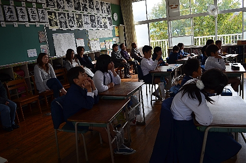 今日はその主婦のグループの方々が、テレビカメラとともに、飯野小3年生教室へ。
