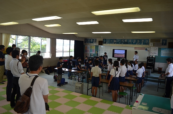 青少年赤十字(JRC)を母体に、名古屋子ども新聞の取材も兼ねて、愛知、岐阜の子どもたち11人が来校。(引率の大人が15人。)