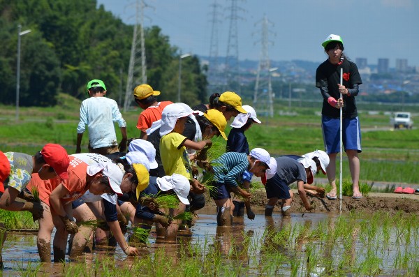 JA青年部の協力をいただきながら、6年生が中心となり、全学年で協力して、田植えを行いました。