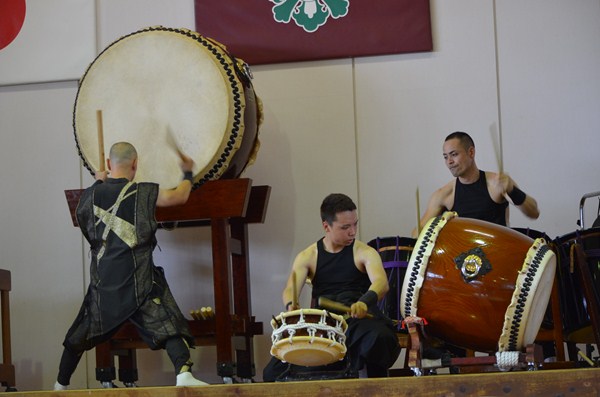 6月22日(水)和太鼓 松村組 復興支援太鼓 投稿日時 : 2016/06/22 学校サイト管理者 阪神淡路大震災後、復興をアピールするために創立されたという「和太鼓松村組」が、本校に登場。子どもたちがたたく和太鼓とはまたひと味違う、大人による力強い迫力ある太鼓の演奏でした。体育館全体が振動し、床がびりびりとふるえます。耳で聞くのではなく、体全体で音圧を感じる和太鼓の演奏でした。音楽クラブによる「共演」もありました。