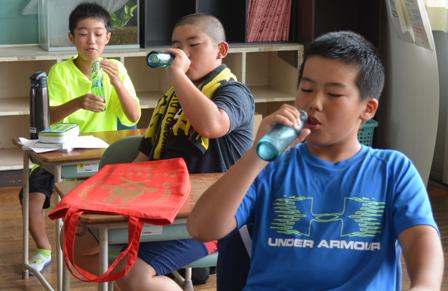 8月4日(木)学びーば ラムネ 投稿日時 : 2016/08/04 学校サイト管理者 「学びーば」も4日目になります。今日は、お弁当の前に、「ラムネ」の差し入れ。一人の大学年の実家が熊本市内で、ラムネづくりをされているそうです。ビンに気がつかれましたでしょうか?そうです。昔のビンです。最近のは、上の部分が青いプラスチック製で取り外しができるようになっていますね。本当に懐かしい、タイプです。もう製造していないそうで、回収を徹底されています。おそらくこのタイプのビンは初めてではないでしょうか。おそるおそる子どもたちは、指であけていました。指で開くんですね・・・!!!出てきた泡にびっくり!くち! くち!! くち!!!子どもたちには、「うまい!」と大好評でした。
