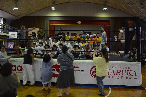 6月7日(水)ドラゴンゲート参上!!(プロレス) 投稿日時 : 2017/06/07 学校サイト管理者 本校2回目の来校です。今回はリングを持ち込んでの立派な試合です。楽しいです。エンターティナ-として素晴らしいです。しかし、ぶつかり合う「バチッ!」「バスン!!」「どゥーん!」という音は紛れもなく本物。短い時間でしたが、皆さん汗だく。やっぱり、テレビとは違います。仮設住宅等からも、たくさんの方に来ていだきました。ありがとうございました。試合後に、気軽にファンサービスをしていただけたことにも深く感謝です。ドラゴンゲートの皆様、ありがとうございました。次の来熊は、11月21日とか・・・・・・・熊本市「中央区」!出身の堀口元気さんです。
