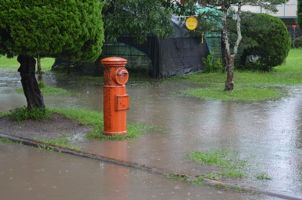 6月29日(水)一時豪雨 投稿日時 : 2016/06/29 学校サイト管理者 梅雨明けが待たれます。21日ほどではありませんでしたが、午前中の一時期、まさしく豪雨!!中庭があっという間にプール状態に。中庭にある、赤い郵便ポスト。飯野小の名物?七不思議?