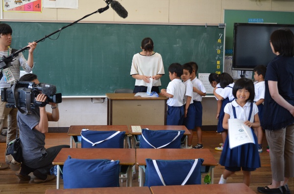 4年生教室では、休み前のプリントを配布中。多いんですよねぇ。