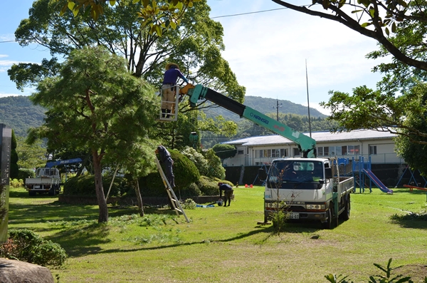 8月22日(火)園芸組合より 剪定のボランティア 投稿日時 : 2017/08/22 学校サイト管理者 早朝より、選定剪定がありました。益城町内の園芸組合からのボランティアです。新学期を目前に、庭木がスッキリしました。