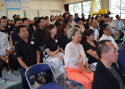 8月26日(土)外国からお客様が多数 米山学友会 投稿日時 : 2017/08/26 学校サイト管理者 今日はたくさんの外国の方が来られました。ロータリー米山記念奨学会の奨学金制度を受けた方々です。韓国、モンゴル、マレーシア、中華民国(台湾)、タイ、ネパールから80人以上の方が来られました。元々は日本への留学生の方ということで、日本語は通じるということで、安心。でも家族を連れた方もいらっしゃいましたので、通訳をお願いしました。昨年度の地震の時のお話をしました。そして、防災についての考えを深めていきましょう、と話を結びました。義援金も頂きました。ありがとうございます。
