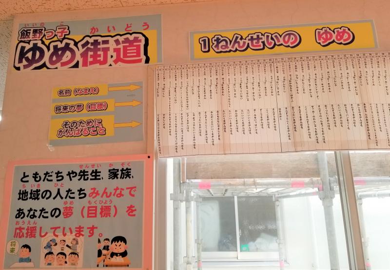 夢を持つことで、「なぜ勉強すべきか」を自分で理解し、予測できないこれからの世代を意欲的に学び続ける力をつけることを期待します。飯野小学校に来られた際は、是非ご覧いただき、子どもたちを励ましていただければ幸いです。
