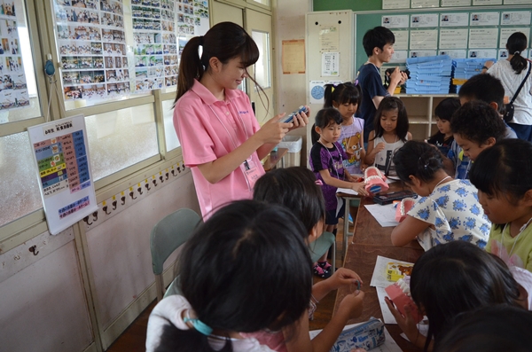8月8日(火)学び-ば 開講式&初日です。 投稿日時 : 2017/08/08 学校サイト管理者 台風のために1日遅れになりましたが、無事、開講式です。久しぶりに子どもたちの声が学校に。子どもたちの様子も、昨年の緊迫感とは違い、通常に近づいている感じがします。夏休みも今年は通常の長さです。昨年は3週間でしたから・・・・・・「私服」の子どもたちに、夏休みを感じます。熊日新聞とテレビが2社取材に来られました。昨年に引き続いての参加が多いです。今年はJA忌め手のメンバーもだいぶいるはずなのですが・・・・・・?先生方の自己紹介です。「学びーば」お決まりの歯についても勉強しました。