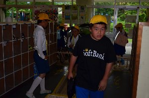 5月9日(月) 学校が再開しました 投稿日時 : 2016/05/09 学校サイト管理者 約3週間ぶりに、学校が、にぎやかな子どもたちの声であふれました。やっぱり、学校に子どもたちは必要です。すみません。当たり前のことなのですが・・・・思ったよりも、ずいぶん早く子どもたちが集まりました。友だちとの久しぶりの出会いを、きっと楽しみにしていたのでしょう。音楽室で「全校集会」避難されている方もおられますので、仲良く生活ために大事なルールを確認しました。教室にいるときに、地震が来たら、こんな風に机の下にもぐりこみます。机の脚は、しっかり握ります。
