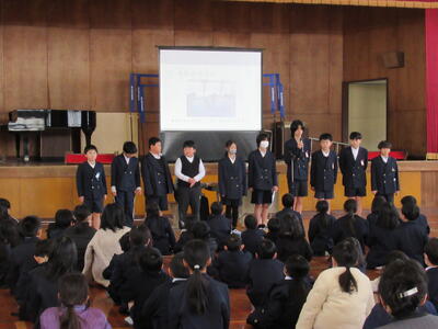 校長先生と一緒に後期前半の学校生活を振り返り、冬休みに大切にしてほしい3つの事柄を確認しました。「冬ならではの行事に積極的に参加する」「これまでの学習のまとめをする」「命を大切にする」です。