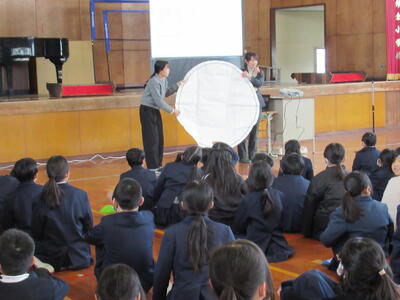 保健室の先生と冬休みの健康な生活について考えました。ウイルスの話では、三択問題が出ましたが、ほとんどの人が初めて知る内容でした。「①ウイルスを体に入れない」で「②規則正しい生活でウイルスに負けない強い体を作る」ことを心掛け、元気に過ごしてほしいです。②のためには「普段と同じリズムでの生活」「適度な運動」「メディアコントロール」がポイントです。