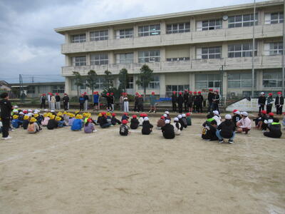 当初の予定と変更して、雨の降る前に、「6年生を送る会」を行いました。