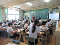 夏休みに搬入された「電子黒板」ですが、さっそく授業の中で活用されています。