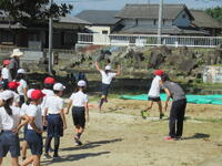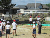 3年生は砂場で幅跳びをしました。今後、ICTの力を借りて空中姿勢を確認し、自分の記録を伸ばすことも出てくるかもしれませんね。