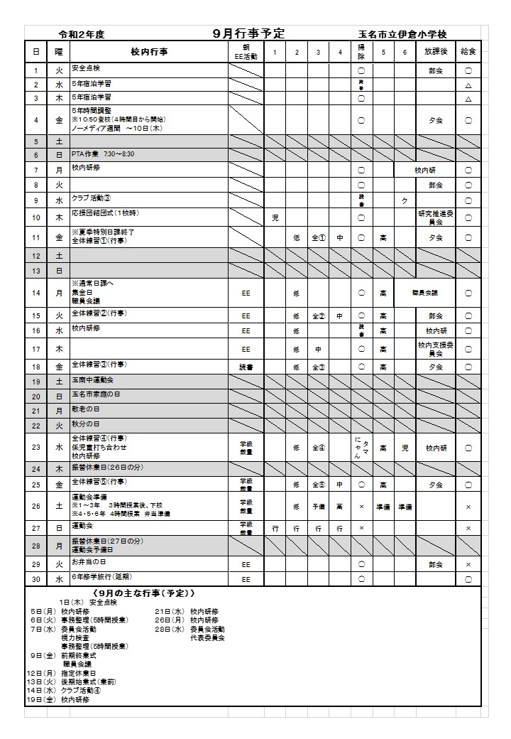 9月行事予定