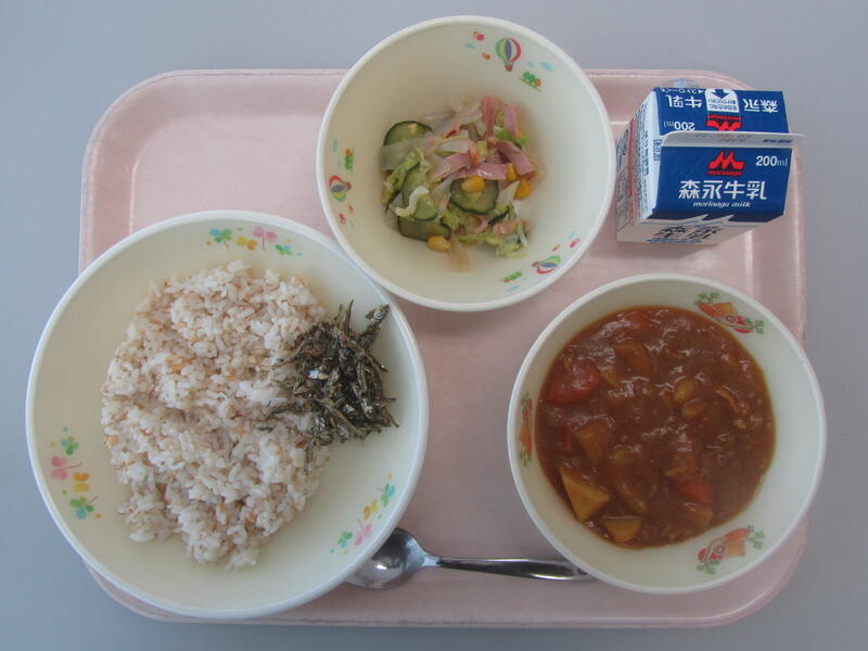 4月22日(金)の給食(雑穀ごはん 牛乳 ポークカレー カムカムいりこ こんにゃくサラダ) 投稿日時 : 2022/04/22 学校サイト管理者 0 {{options.likeCount}} {{options.likeCount}} {{options.unlikeCount}} {{options.unlikeCount}}