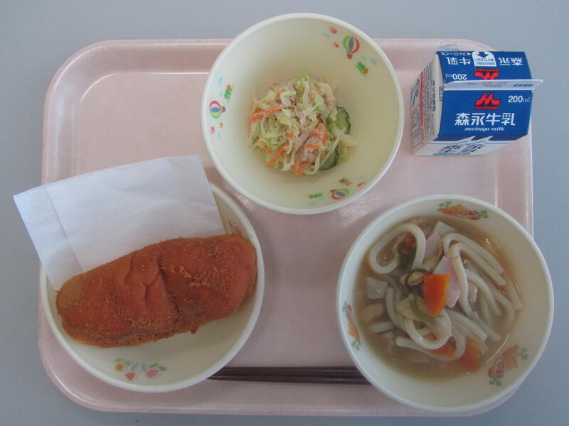 5月12日(木)の給食(揚げパン 牛乳 具うどん ツナサラダ)